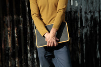 13” sustainable laptop sleeve. The outer skin of the Elvis & Kresse Laptop sleeve is ethically handmade from reclaimed printing blankets, rescued from the printing industry, and combined with our signature decommissioned fire-hose.There is also an additional layer of closed cell foam, and the lining is reclaimed parachute silk, offering ultimate protection to your laptop.