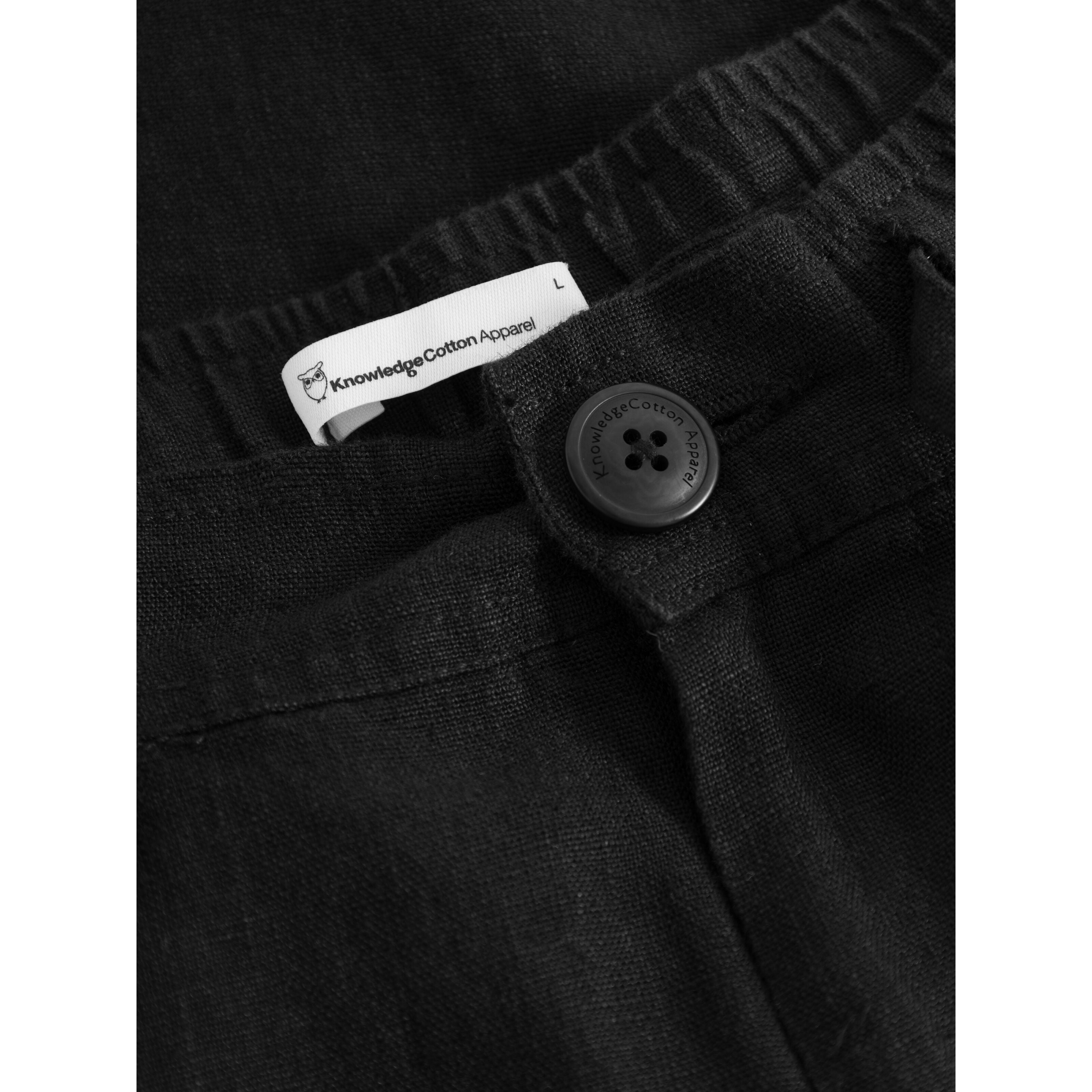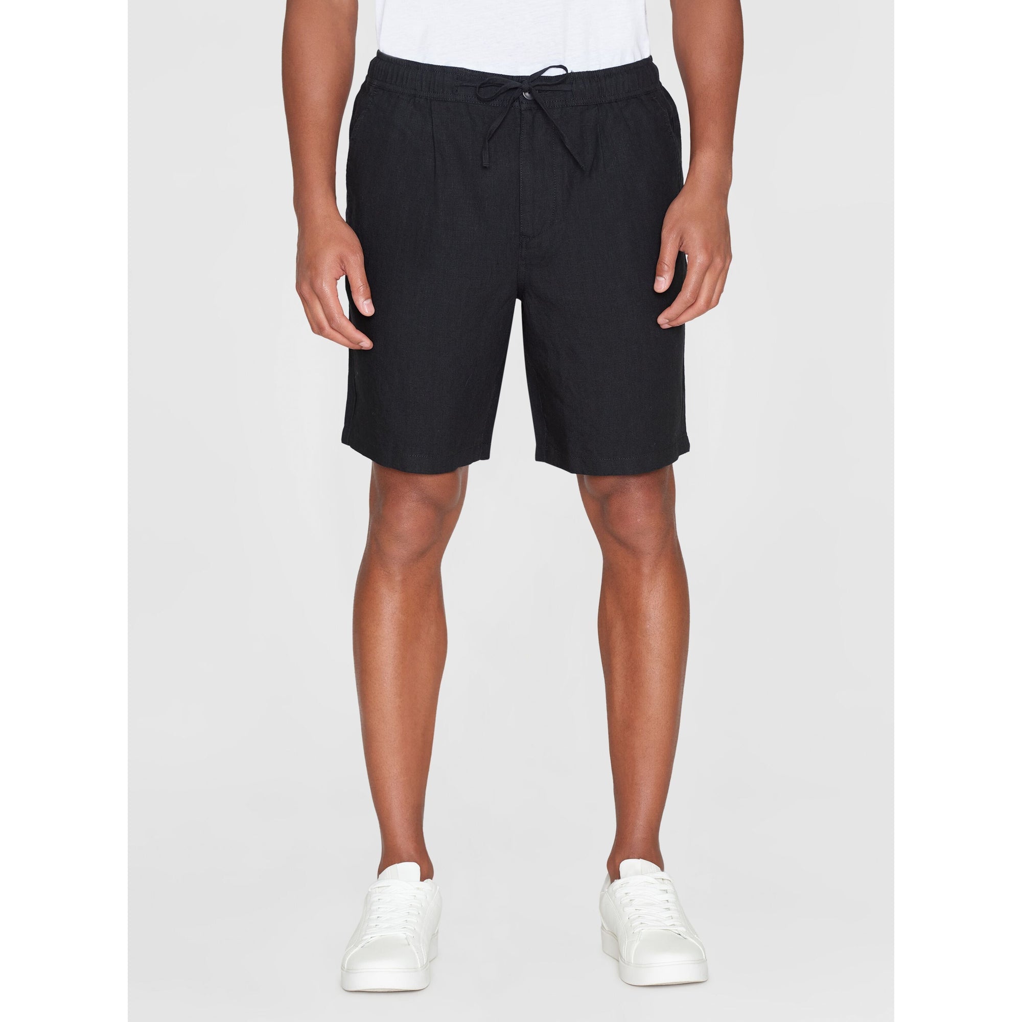Choose a pair of soft and responsibly made shorts for warmer days. KCA's loose linen shorts are designed in a straight fit with an elastic waistband, adjustable cords, and button closure. Made from 100% organic linen, the quality feels incredibly soft, lightweight, and airy to wear. The shorts have a natural melange dye and are finished with slanted front pockets and discrete back pockets.. Nature loving Danish designers Knowledge Cotton Apparel make low impact clothing for both the hike and the bar after.