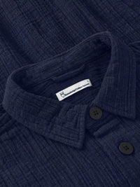 This short-sleeved shirt is crafted from lightweight organic cotton, offering a soft, breathable feel perfect for everyday wear. Designed in a relaxed fit, it ensures comfort and ease while maintaining a modern silhouette. The textured weave adds subtle depth, complemented by a button-down front and a classic collar for a refined finish. Ideal for pairing with chinos or shorts, this shirt brings effortless sophistication to casual and smart-casual outfits alike. Nature loving Danish designers Knowledge Cotton Apparel make low impact clothing for both the hike and the bar after.